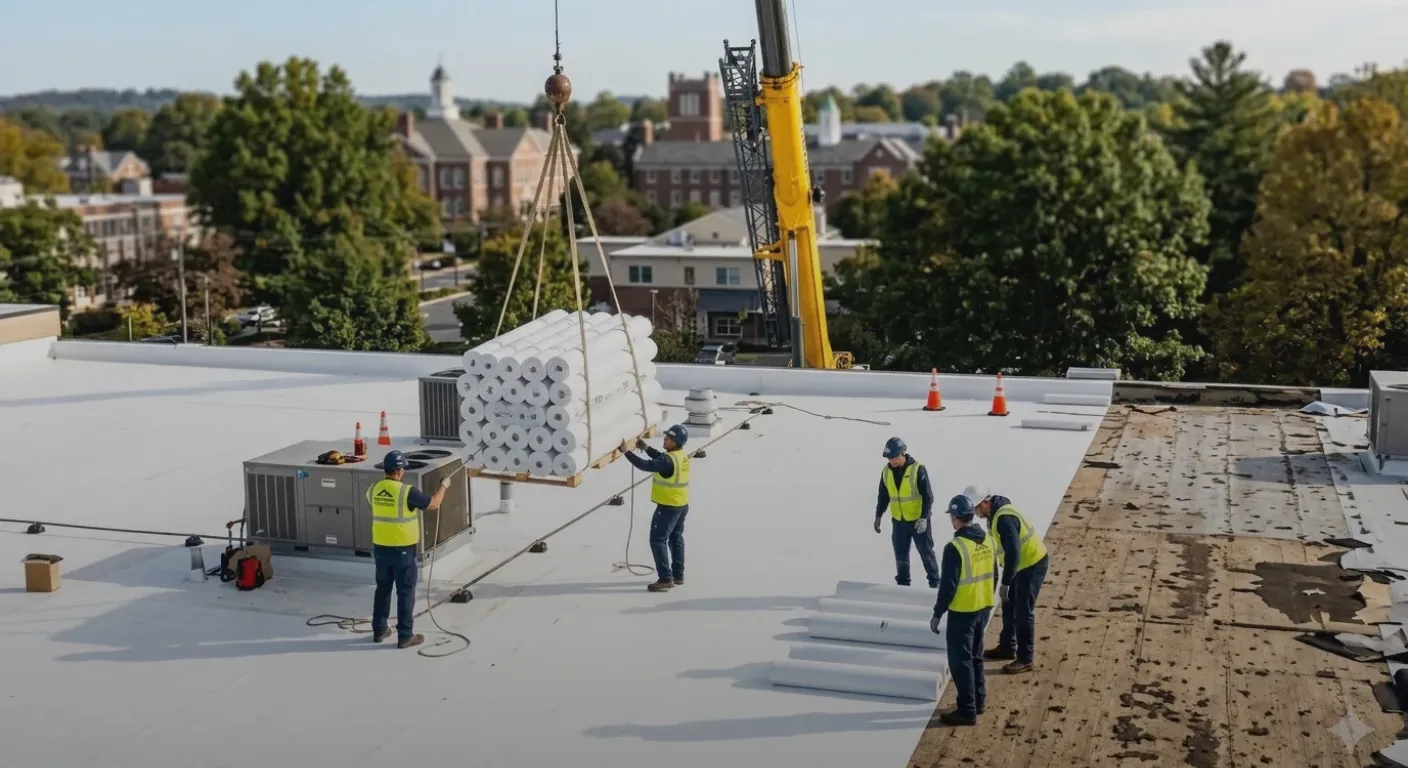Commercial roofing projects require careful coordination to avoid business disruption.